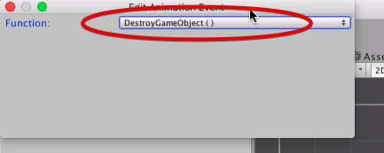 y vincular el nombre de la función DestroyGameObject para que se invoque en ese instante de la animación: